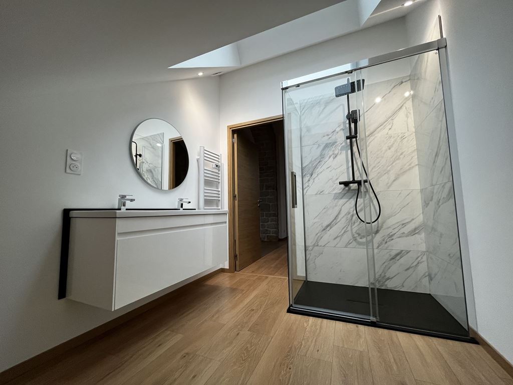 Superbe appartement haut de gamme situé au centre-ville de Vesoul au 3ème et dernier étage sans ascenseur, composé d'une cuisine équipée (four, plaque de cuisson avec hotte intégrée, réfrigérateur encastré, lave-vaisselle) ouverte sur spacieuse pièce à vivre, deux chambres, un salle d'eau avec grande douche à l'Italienne, wc. Avec garage.
