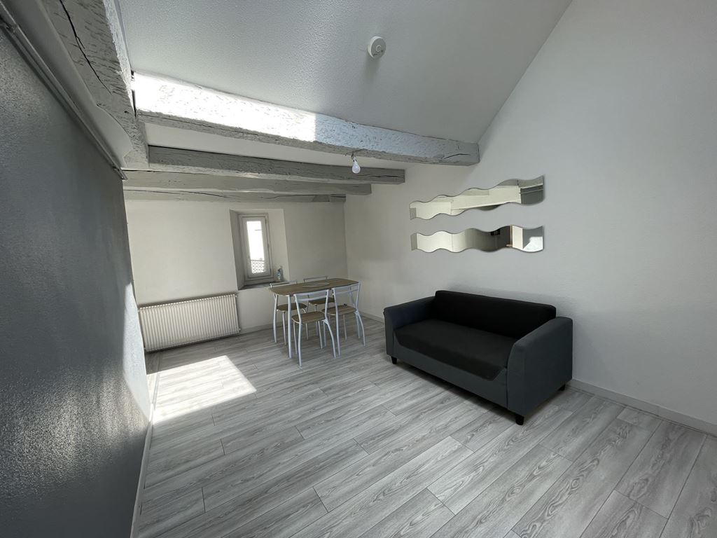 Appartement de type 2 meublé, au 2ème étage d'un immeuble en plein centre ville de Vesoul, comprenant : entrée, cuisine équipée ouverte sur pièce à vivre, une chambre, salle d'eau - wc. Chauffage au gaz de ville individuel.