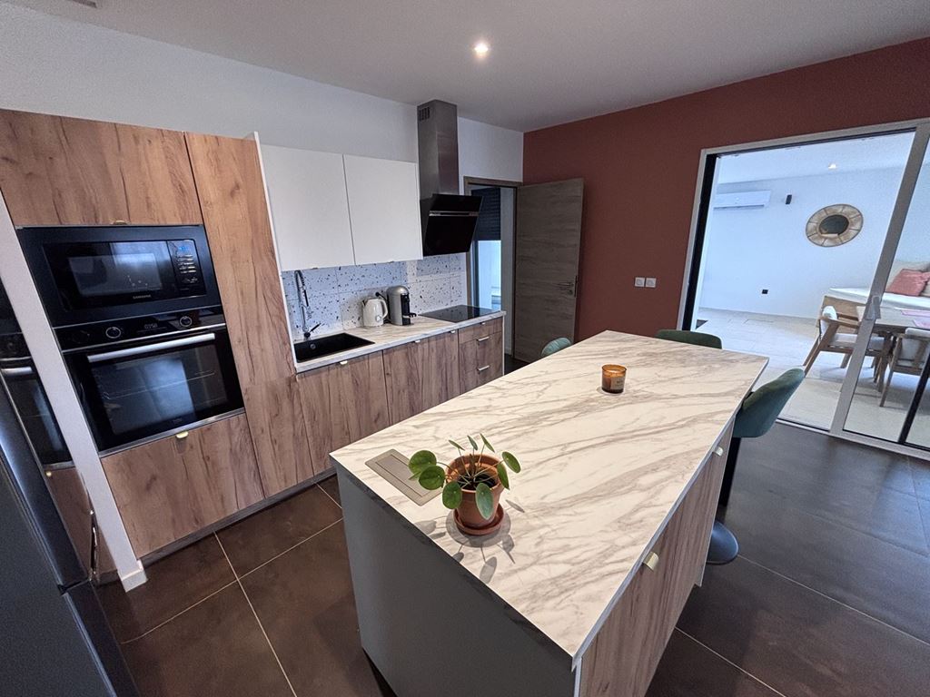 Il se compose d'une entrée, une cuisine équipée moderne ouverte sur séjour. Partie nuit avec trois chambres, une salle de bain complète avec douche et baignoire, wc. Cellier et garage.